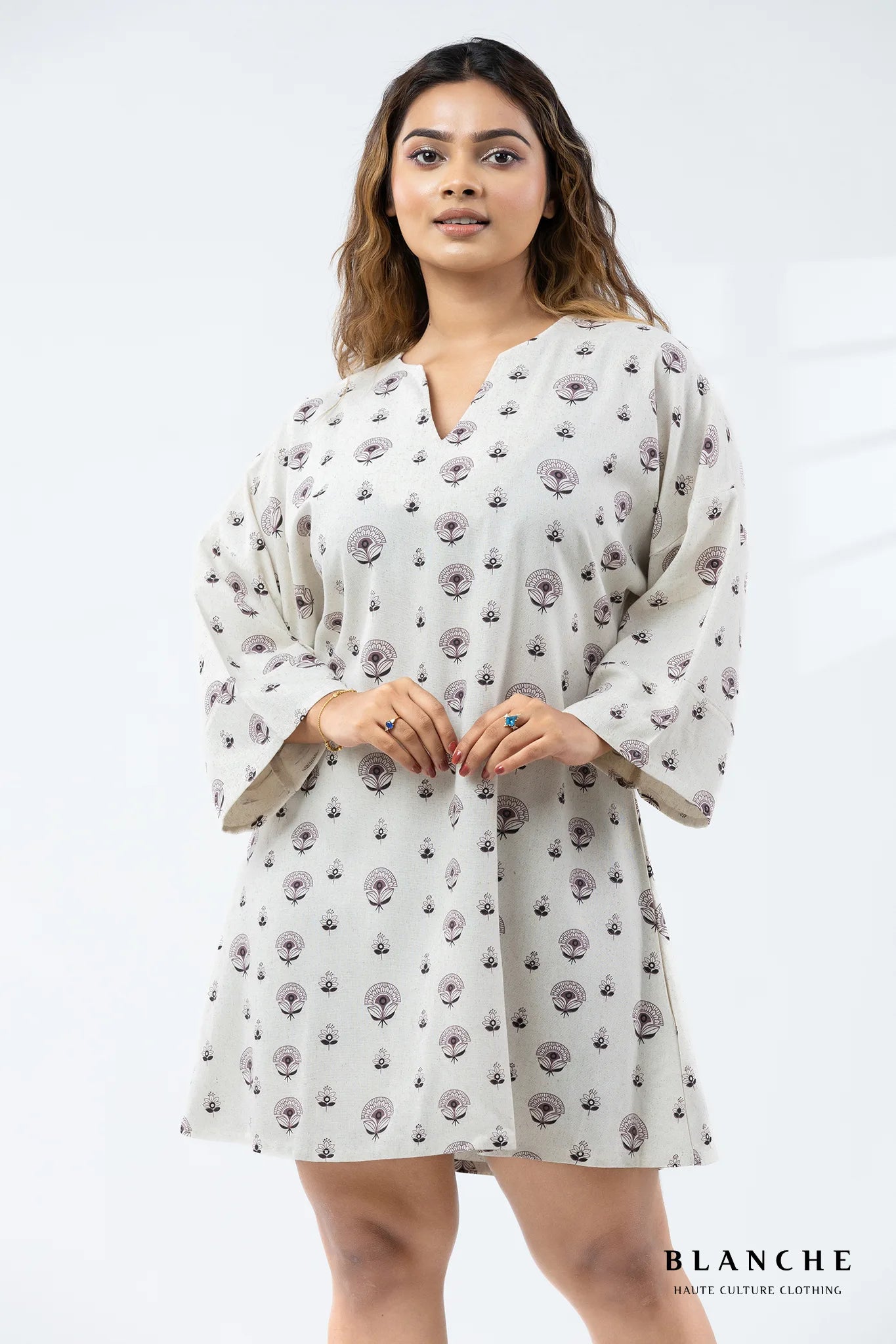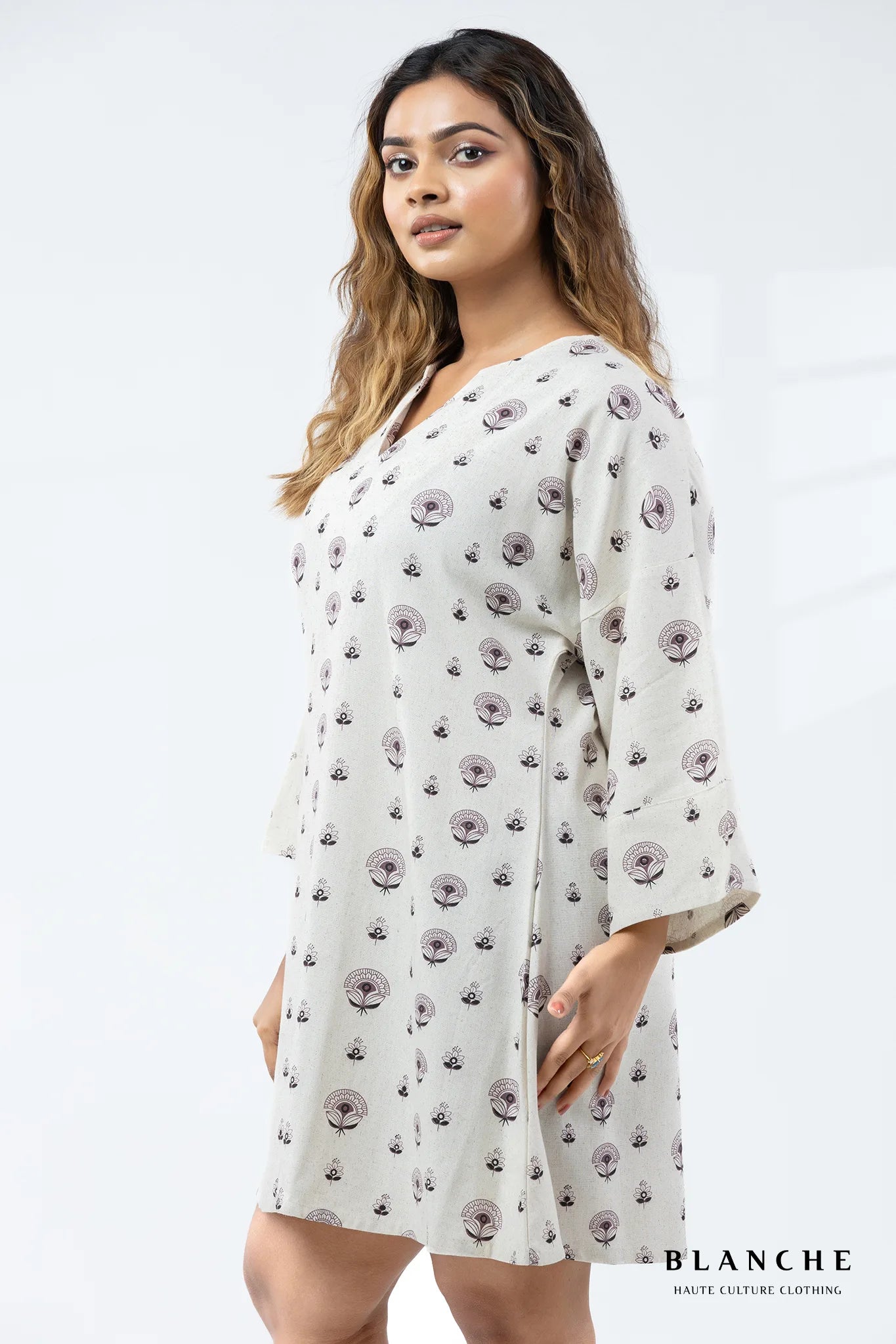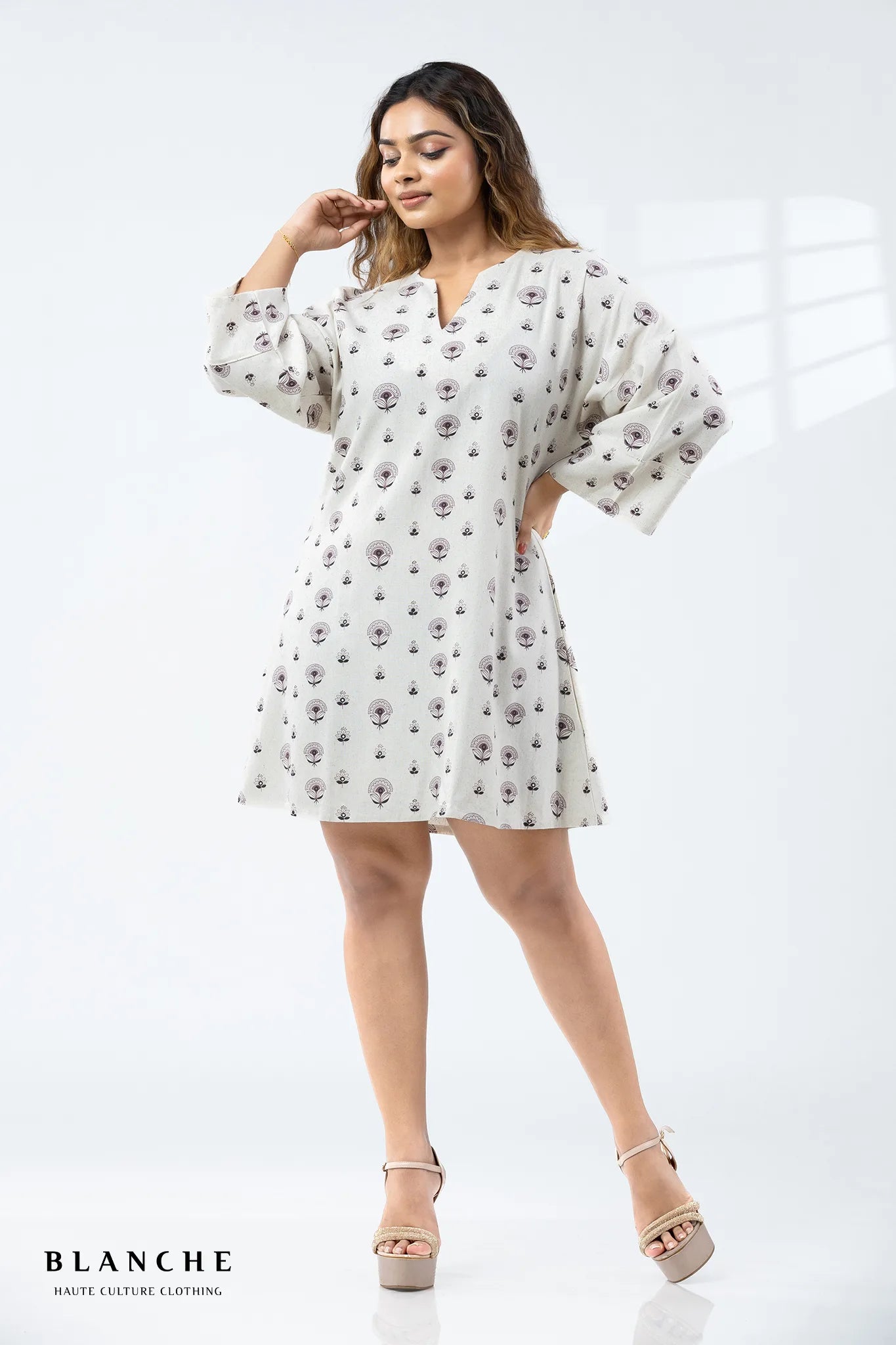 Allover Print Sand Bloom Mini Dress